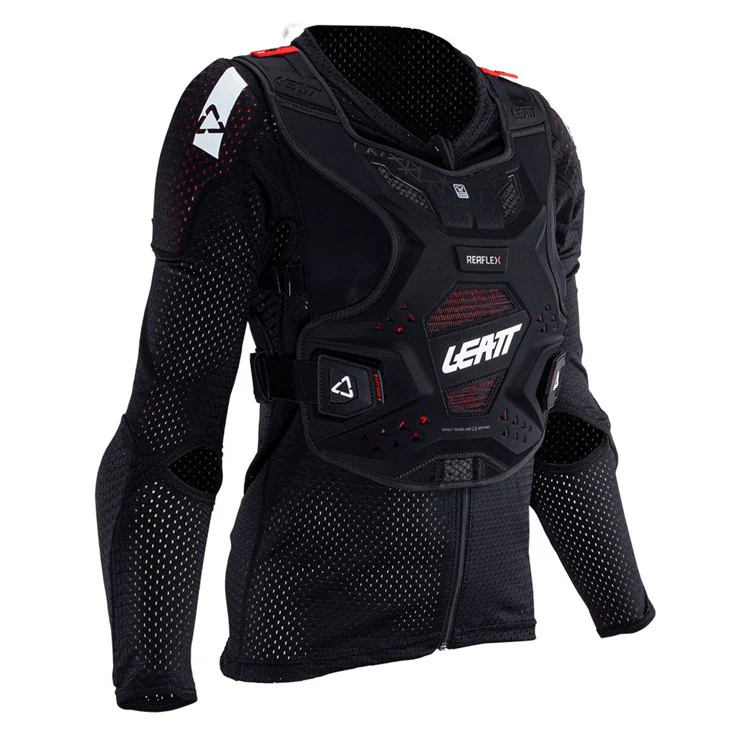 The ReaFlex Body Protector Women comes in 2 parts: a zip up compression sock with soft impact shoulder and elbow protection, and a ReaFlex chest and back protector worn over the top. ReaFlex is a reactive impact gel that absorbs energy under impact, and is extremely comfortable due to its flexibility.